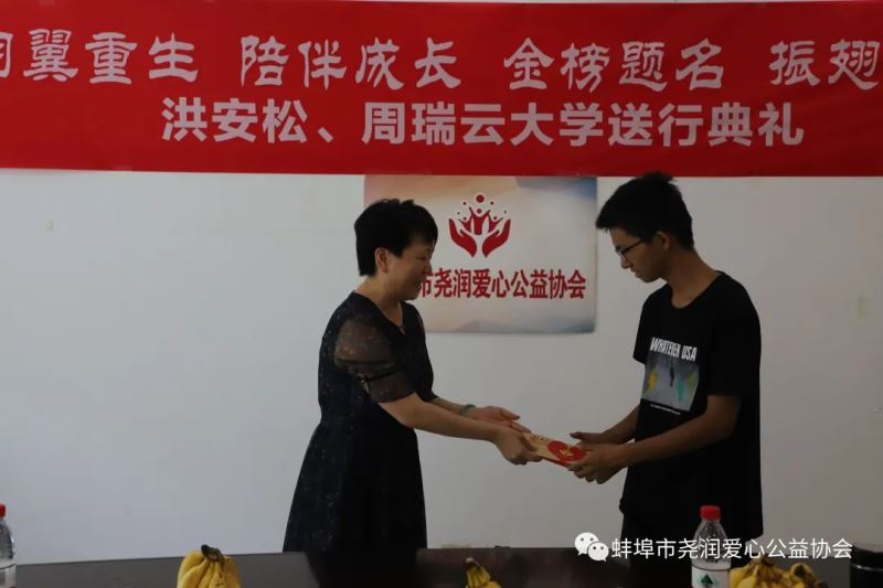 2022年9月7日上午,在尧润爱心公益协会会议室,“羽翼重生,陪伴成长,金榜题名,振翅高飞——洪安松,周瑞云大学送行典礼”正式举行。