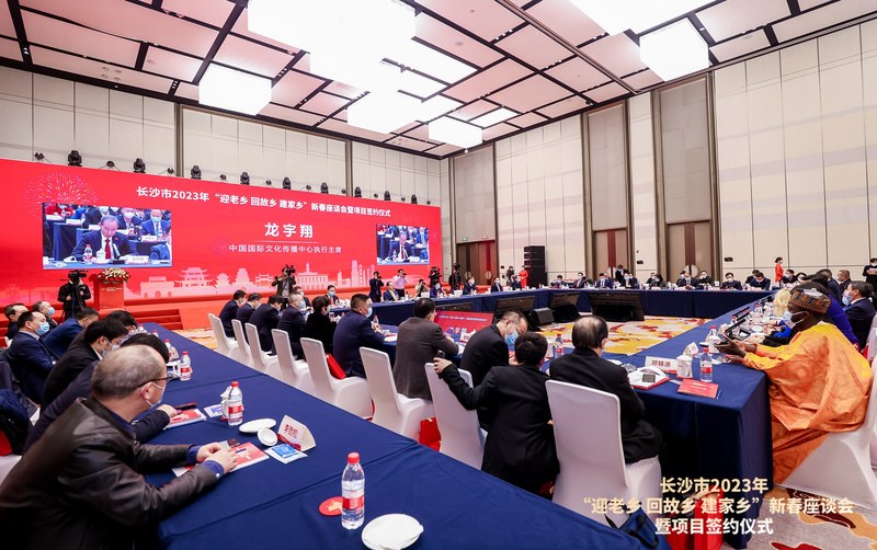 (中国国际新闻杂志社张洁副社长推荐)2月3日,长沙市2023年“迎老乡 回故乡 建家乡”新春座谈会暨项目签约活动成功举行。省委常委、市委书记吴桂英,省政协副主席、省工商联主席张健出席并见证签约。市委副书记、市长郑建新主持。中国国际文化传播中心执行主席龙宇翔出席并被聘任长沙市首批招商大使。