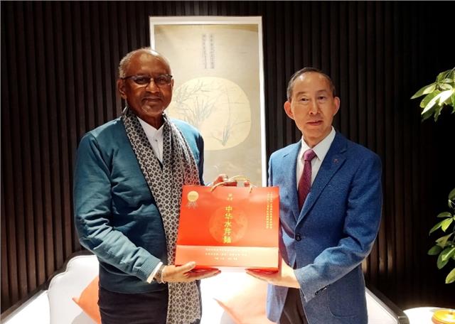 龙宇翔向弗明·麦道柯赠送中华水芹麺