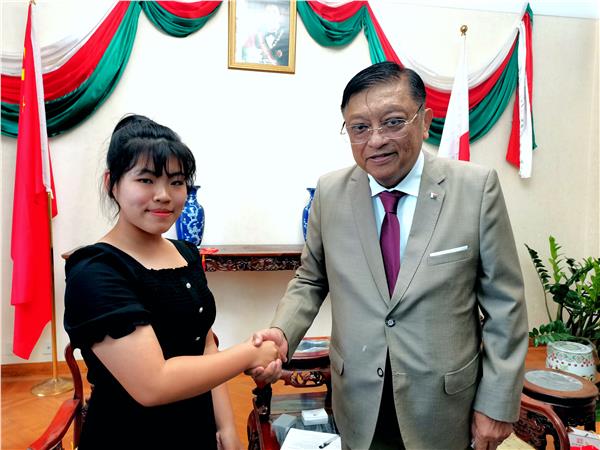 会前,马达加斯加共和国驻华大使让·路易·罗班松阁下亲切会见了马梦园。罗班松大使对马梦园在非物质文化遗产传承方面所取得的卓越成就表示热烈祝贺,并特别赞扬了她“弘扬传统文化,传承京剧艺术”的杰出贡献。为表彰马梦园的杰出成就,罗班松大使亲自为她颁发了聘书,诚挚邀请她担任“马达加斯加共和国驻华大使馆文化艺术交流特使”。