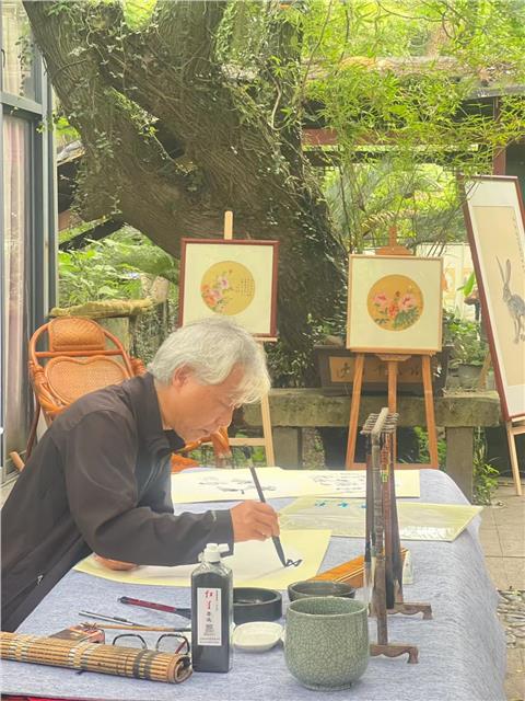 近期由来自北京的着名画家养林先生、陆爰先生合作的《吉祥罗汉、次第花开》团扇画展在位于舟山市定海区齐之行庄园展出,无人机拍摄了这场独特的庄园情景书画展。